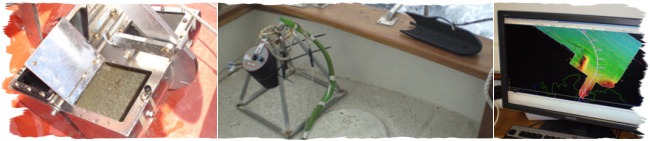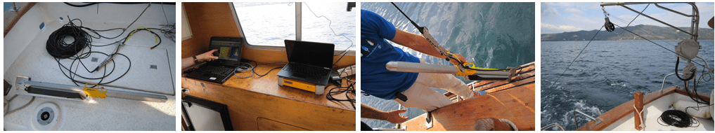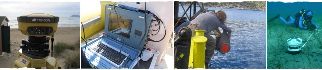 The Group also owns a variety of hand-held equipment for coastal studies, such as GPS systems Simrad και Garmin, a Nikon Laser 1200s distance finder, hand-held echosounders and underwater video cameras (GoPro Hero3), conductivity, temperature and PH sensors (Delta OHM HD 2156.1), as well as various data loggers.