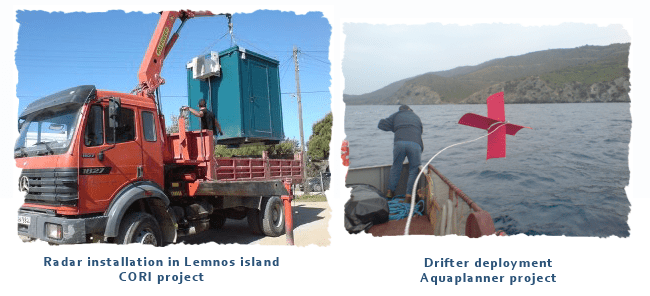The Physical and Chemical Oceanography research group has been collaborating on a permanent basis with the Institute of Oceanography of the Hellenic Centre for Marine Research. This collaboration takes place in the framework of the co-ownership and co-management of the Dardanos ΗF radar for monitoring the coastal currents off the east coast of Lemnos island as well as in the framework of a series of research projects (AegeanMarTech, MedEcos, MedEX, PERSEUS, SESAME, ARGO etc.).